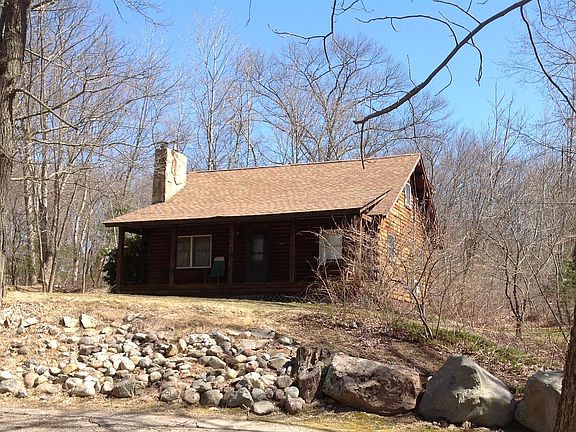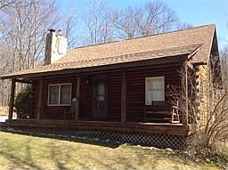 If you are looking for a real feel of a Log Cabin home, look no further! Great setting for this 3 bdrm log home that sits perfectly on .87 acres! Cathedral LR w/a beautiful brick hearth fireplace for wood/pellet stove capabilities. Open floor plan into eat in kitchen w/dining area. 2 bdrms on your 1st floor w/lofted master bdrm on second floor w/double closet. FR in lower level w/pellet stove & additional den/office. Farmers porch & deck to enjoy your wooded privacy!~Roof replaced in 2007!