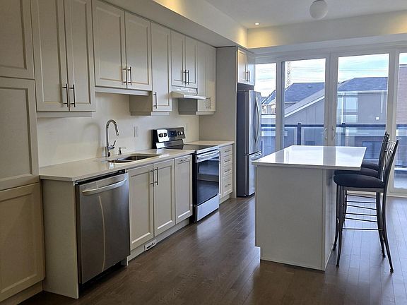 Welcome to this Waterfront Paradise! This beautifully maintained, 1706 sq.ft townhouse condo features an open concept layout, modern finishes and generous living space perfect for both relaxing and entertaining. This property boasts hardwood floors through out, Oak stairs with iron pickets, 9Ft Ceilings, 3 Bed/3 full Bath. Master W.2 Double Closets, Modern Kitchen with a large island, all quartz counters and W. Walkout Terrace, Gas Bbq Hook-Up, Pantry. S.S. Kitchen Appliances & Samsung Washer/Dryer On Bedroom Level. Enjoy an unobstructed lakeview from all Floors W. Patio Overlooking Lake Ontario.