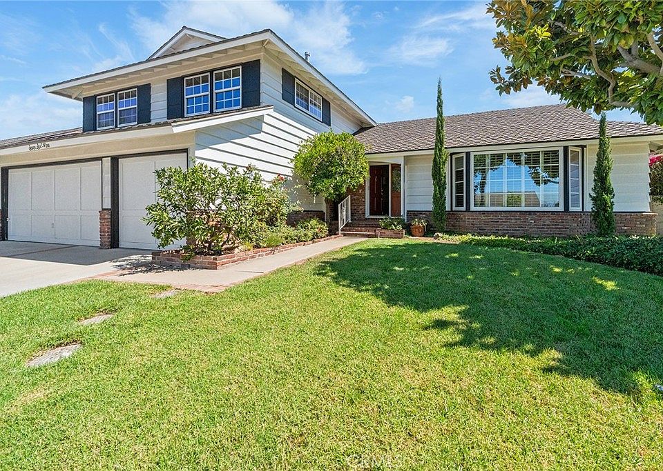 Discover this delightful 5 bedroom, 3 bathroom, lovingly maintained home located on a quiet cul-de-sac in one of Orange’s most desirable neighborhoods. With its English garden landscaping and breath catching curb appeal, this home welcomes you with timeless style and endless possibilities. Inside the generous 2,604 square foot home, the thoughtful floor plan offers both functionality and flexibility. Enter into a foyer that leads you to either the formal living room with its oversized windows or into the kitchen, breakfast nook, family room. The kitchen, which looks out onto the garden, is open to the cozy and inviting family room with its fireplace. A paned sliding glass door leads you to the covered patio which is perfect for dining al fresco year-round with family and friends, or enjoying a sun-filled, quiet morning coffee. You can relax and watch the kids or dogs playing on the grass which is lined with fragrant roses and other beautiful easy to care for landscaping. A formal dining room off the kitchen also has a sliding door to a morning patio leading to the backyard. This is an entertainer’s home just waiting for you to make it your own. The main floor bedroom, next to a full bathroom, can be a private office or bedroom. Upstairs, the primary suite with its double door entry, offers an oversized yet comfortable retreat, while three additional large bedrooms with their beautiful plantation shutters provide plenty of room for everyone. A cozy bonus space, off the separate downstairs laundry room, was once a sewing room; it lends itself to a creative nook or extra storage. The 3-car garage has direct access into the house, storage, and a workbench. With fresh paint and new carpet throughout, this residence is move-in ready yet offers a remarkable opportunity for you to bring your vision and transform it into a fabulous, updated home. All these features, just 2.5 miles from the historic Orange Plaza, and minutes to shopping and the 22 and 55 freeways, make this home the perfect blend of charm, convenience, and potential.