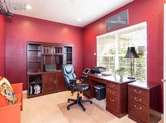 Spectacularly maintained 4 bedroom (plus office), 3 bathroom home in desirable Homestead at Jackson Creek. Gorgeous curb appeal and main level living in this Goetzman home. Fully landscaped front and back with a beautiful water feature in the back yard. Just imagine sitting on the spacious deck and listening to the gentle sounds of the waterfall on a relaxing Colorado evening. Brand new roof, hardwood floors on the main level and a large family room downstairs make this the ideal home for living and entertaining.