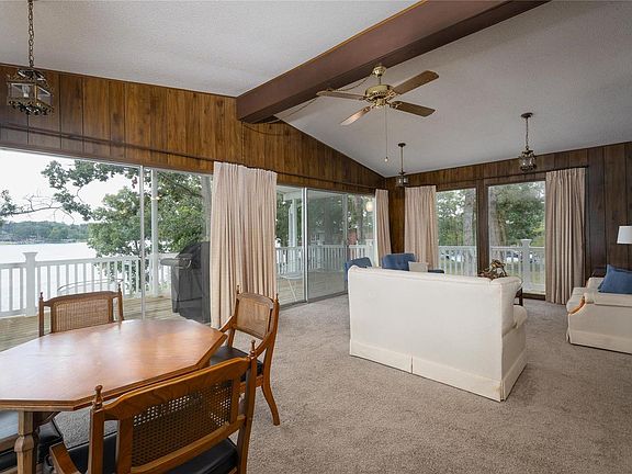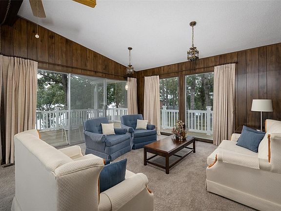 Welcome to your perfect getaway at Indian Hills Lake! Located just 1 hour from St. Louis. 1 acre double lot. As you step inside, you'll be greeted by an inviting open floor plan that seamlessly connects the kitchen, family room, and a spacious sunroom. Natural light floods the space, highlighting the serene interior and creating a warm atmosphere to unwind. The two bedrooms are conveniently situated at the front of the home, providing privacy and a restful sleep environment. A cozy living room acts as a buffer between the living spaces and the generously-sized 2-car garage. Step out onto the expansive covered back deck with a great view of the lake and sunsets. The home comes fully furnished, so you can start enjoying the lake life immediately. For water enthusiasts, the lake is just a few steps away. Enjoy boating, swimming, or simply relaxing on the dock. Amenities include tennis/pickleball courts, a rec hall for gatherings, basketball court, and beach/playground area. Additional Rooms: Sun Room