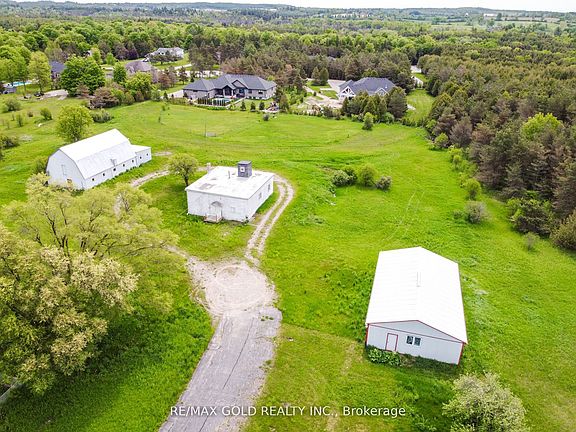 Good Future Potential. This rare five bedroom home with three auxiliary buildings is nestled on ashy of 4 acre property that features beautiful, mature towering trees and is the perfect location for those wanting a quiet, peaceful home oasis. Conveniently located minutes away from the 401,restaurants, the cinema and shopping, hiking trails, schools, entertainment etc. You can also enjoy this nightly view from your front covered porch, while enjoying a passing summer breeze. This main floor has bed room and 3 piece washroom. This property has everything you need and more, including more parking than you can count (20+ spaces), a 50 x 30 7-stall horse barn with tack room, a second, even larger 10-stall horse barn with tack room and second story hay storage, and a large 36 x 41auxiliary building making this the perfect property for you! VTB is also available