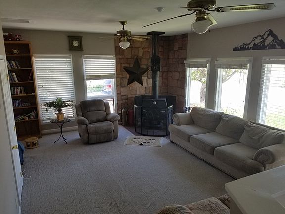 Come take a look at this great 2 story home situated on over 2 1/2 acres of land with awesome mountain views. Home features wood flooring, living room and family room with fireplace on main level. Spacious kitchen with eating space and access to new back yard. Upstairs has 2 big rooms and a full bathroom. The master is a spacious room with attached master bath both with great mountain views. Back yard features new grass, rock, stamped concrete patio, basketball court, water feature, and tons of space for the kids to play. Come see this one quick it will not last long. Call for a showing today.