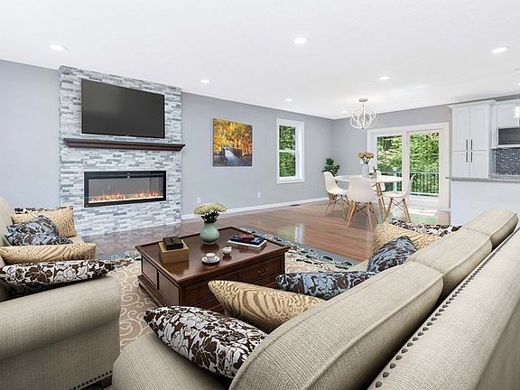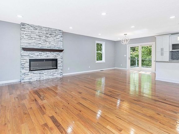 WELCOME HOME to this STELLAR CUSTOM blt home- this isn’t your standard new construction! Entertain guests in this open flr concept featuring lots of natural light leading you out to private outdoor dining deck flanked by woodland views. Fantastic kitchen highlights ss appliances, white cabinetry, w/ bk splash, center island, granite c tops & butler pantry opening to dining area / living area featuring an electric fireplace for those cozy nights. Make your way upstairs to your grand primary suite w/ spacious walk-in closet & spa-like shower highlighting soaker tub! Second flr offers an additional 3 large bdrms, full bth & laundry. Lower level offers an unfinished basement w/ potential to finish featuring 9 FT ceiling & walk-out access to the backyard! This property offers some great amenities throughout-2nd flr bath mirror able to change lighting & de-fog steam, recessed lighting has 3 settings on main flr for dimming purposes & beautiful hdwd throughout all bdrms & entertainment space!