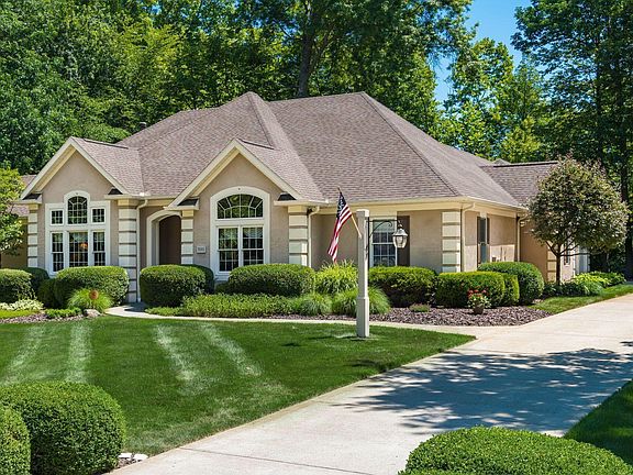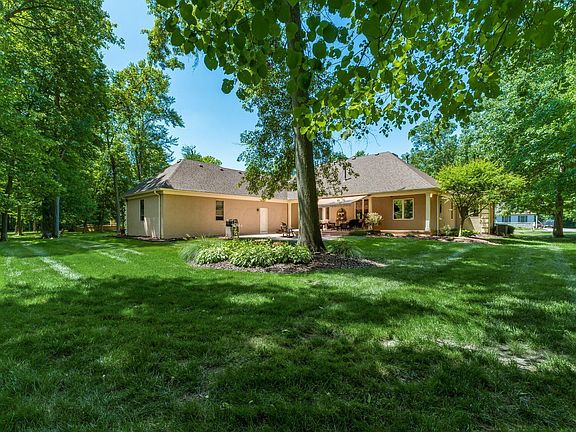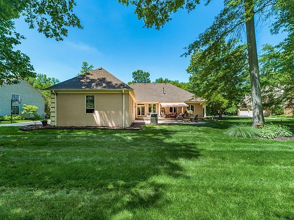 Custom Built Heitmeyer Home in the very desirable '' Jefferson Farms '' situated on large private lot that backs to mature trees. Very appealing 1 story floor plan w/ large great room & fireplace, vaulted formal dining room, kitchen with custom cabinetry, granite counters and stainless steel appliances, vaulted home office with French door, primary bedrm w/ walk in closet & remodeled luxurious bath with walk in tiled shower and separate soaking tub, addl bdrms on 1st floor w/ their own full jack n Jill bath, impressive finished lower level with egress windows, rec room, bedroom with full bath & walk in closet, large storage room, 3 car side loading garage, nice patio with motorized awning, proud owner- very well maintained