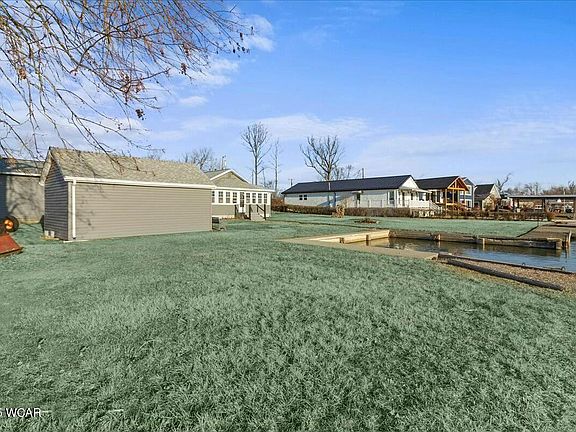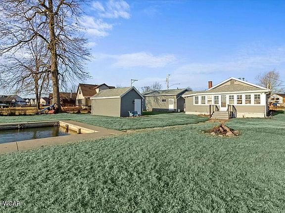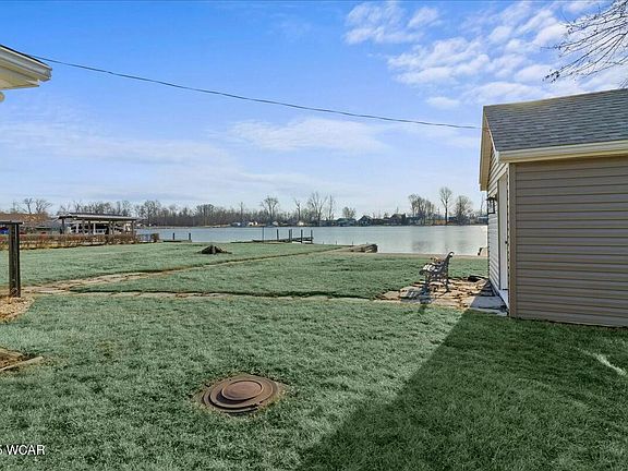 This charming waterfront cottage offers an expansive, breathtaking view of the lake in the Dunn's Pond area with 79 feet of water frontage. Featuring extensive exterior updates, this property blends modern curb appeal with the serene beauty of it's surroundings. The cozy fireplace is ideal for relaxing in the colder weather months and there is a double boat slip for easy access to the lake. The extra living space connected to the garage offers ample room for indoor entertainment, with its own bathroom. New roof/gutters/siding/soffits are on the home, shed, and garage. (Square footage on the auditor's site is incorrect). The Waterbury subdivision is just a quick golf cart ride to many restaurants and shopping options. Call today for your own private showing!