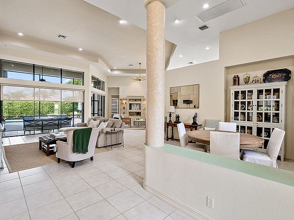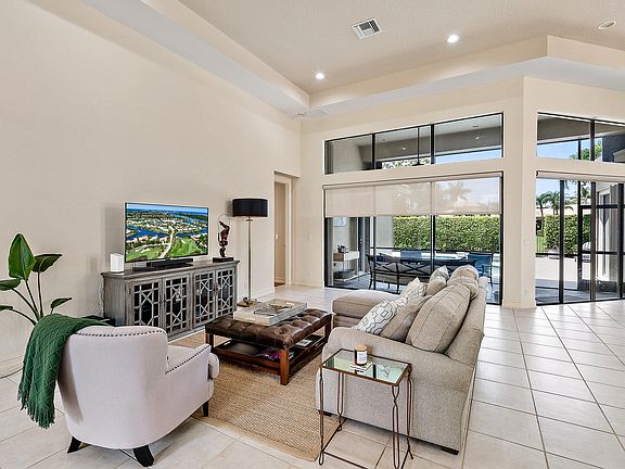 Loaded with well over $150,000 in upgrades and renovations, this sleek-yet-warm 3BR/3BA+Den boasts one of the most open floor plans in Ibis. With sunset views, west, the interior of the home expands beautifully to the lushly landscaped and upgraded pool and spa area--offering privacy and tranquility with a backdrop of the third hole of the Nicklaus-designed Tradition Course. NEW ROOF and GUTTERS, (2021), NEW GENERATOR and surge protector system (2021), NEW partially screened enclosure (2020), NEW glass front doors (2020) and more thoughtful and useful quality enhancements! The kitchen features stainless appliances, granite tops, frosted glass upper cabinets and installed new bottom cabinet drawers and molding, and a contemporary back splash (plus a custom designed seating unit which conveys). All three bathrooms have been remodeled with new vanities, counter tops, fixtures and mirrors. Accordian hurricane shutters offer convenience and protection, and the pool and spa has been completely redone including resurfacing (2015), new heater (2018), pool pump (2021) and Jandy system (2021.) Plantation shutters, LED lighting throughout (2020), two custom built-ins and office), upgraded landscaping and replaced sprinkler system, new flooring in guest bedroom and more.