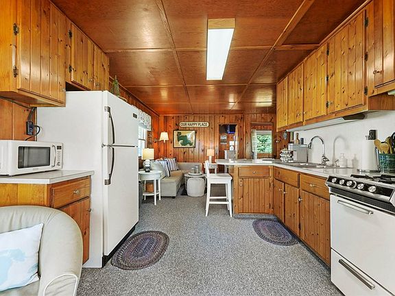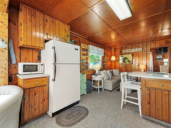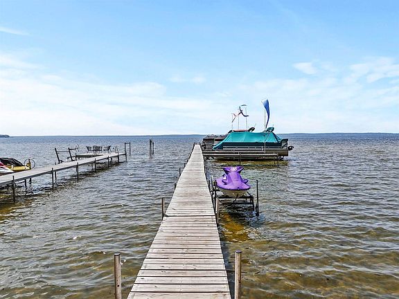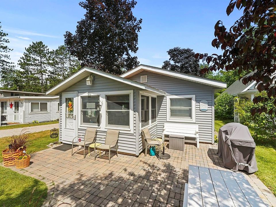 Charming shared lakefront cottage just one house off the lake, offering stunning lake views from the front windows. This turnkey home features 3 bedrooms, 1 full bath, washer and dryer and includes a shed for your toys. Beautifully maintained home is finished with knotty pine interior for that upnorth feel. Views of the lake can be enjoyed from all of the main living space of the cottage. Relax on the lovely patio facing the lake. Shared amenities include yard games, a sandbox, fire pit, and more. A boat slip is also included, making it the perfect lakeside retreat.
