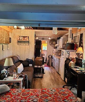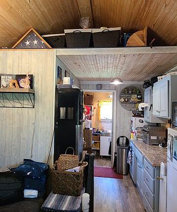 This is true tiny home living. Must see to beleive. It does not have a full bathroom in the house there is a composting toilet and sink cold water only. There is a propane shower in the carport. This sets on a beautiful 5 acre lot. Lot size and Utilities to be verified by agent. The tiny home has a Queen sized bed on the main section and room for up to a king size bed in the loft area. There is a ladder to access either loft. There is a window unit. It has been fully wired. Both house and shed have been set on a level lot with construction grade water barrier. Please give the seller 24 hours notice for showing. There is electric and water run to the property there is no hot water.