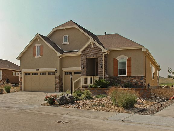 Better Than New!! Why wait for new construction, ...when you can move right into this beautiful home and enjoy the rest of summer! Desired Gable model in Heritage Todd Creek, award-winning 55+ community. On the 14th fairway of Todd Creek Golf course, beautiful plantation shutters throughout and a whole house water softener/filtration system. Enjoy your covered patio and the golf course view while the sun shines, the beautiful backlit paver patio and a cozy gas fire in the evening. Low maintenance, professionally zero landscaping. Dual primary bedrooms, plus a den with French doors and patio access, open plan and a beautiful kitchen to create your own masterpieces. Resort-style living at it's best!