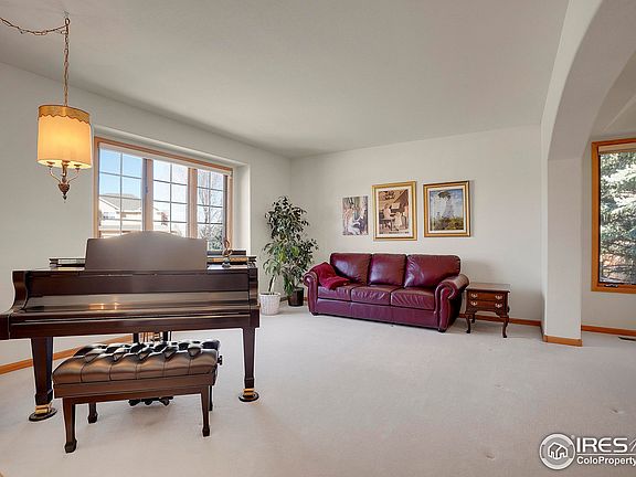 This captivating property resides in Highland Meadows on a quiet cul-de-sac, boasting 5 bedrooms, 5 bathrooms, and nearly 5000 finished sqft. The single-family home includes a 3-car garage, providing ample parking and storage. As you step inside, a grand foyer with high ceilings and radiant natural light greets you, setting a warm ambiance. The main living areas feature elegant hardwood floors and plush carpeting, adding sophistication. The dining area seamlessly connects to the well-appointed kitchen with granite countertops and modern appliances. A spacious family room with a fireplace offers a cozy retreat. The primary bedroom impresses with vaulted ceilings, a two-sided fireplace, and a luxurious ensuite bathroom. Additional bedrooms upstairs provide comfort and convenience, with ensuite and shared bathrooms. The professionally finished basement offers versatile living space, including a wet bar and game area. Outside, enjoy outdoor living on the expansive redwood deck overlooking the yard and community green space. Conveniently located near I-25, shopping, and schools, this home offers luxury and convenience.