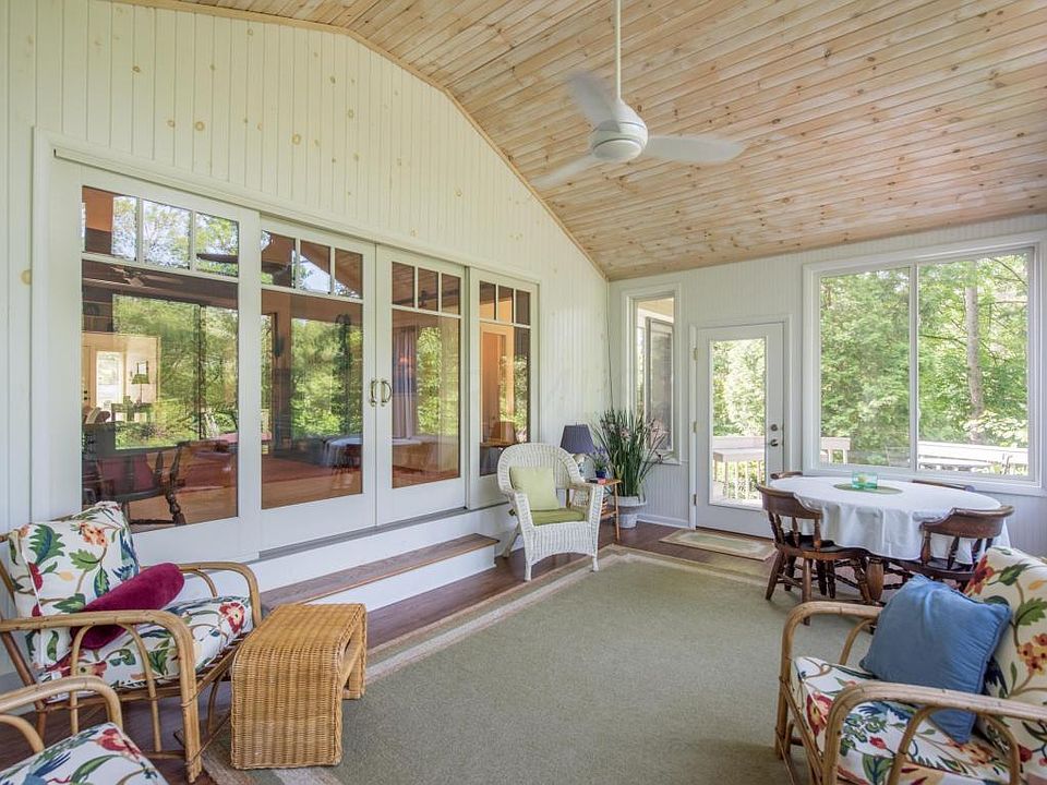 Welcome home to this cozy midcentury cottage nestled on the banks of the Scioto River! With all the right updates for truly comfortable living, the original charm of the home shines through with beamed ceilings, built-in bookshelves, and plenty of windows to enjoy the views of the river, woods, and wildlife. The great room features a stone fireplace and new hardwood floors, leading to the wonderful all-season sunroom with access to the multilevel deck. The sun-filled eat-in kitchen has two pantries and stainless appliances. The owners' suite has a large walk-in closet and en suite bath with heated floors, clawfoot soaking tub, and laundry. Kayak or fish from your own dock! The main garage has a bay for storage. There is also a second garage and a shed. New roof. Close to Dublin Bridge Park
