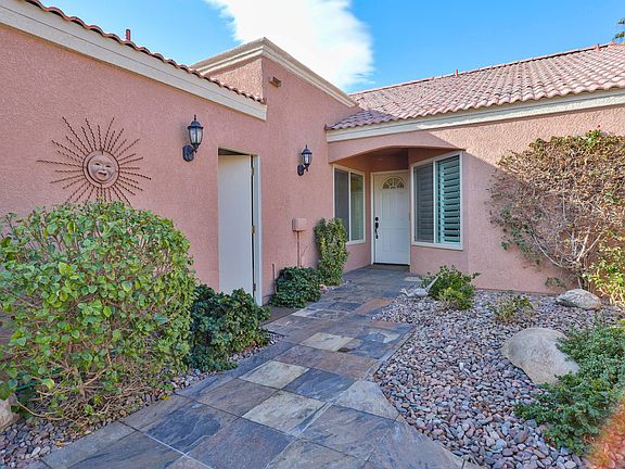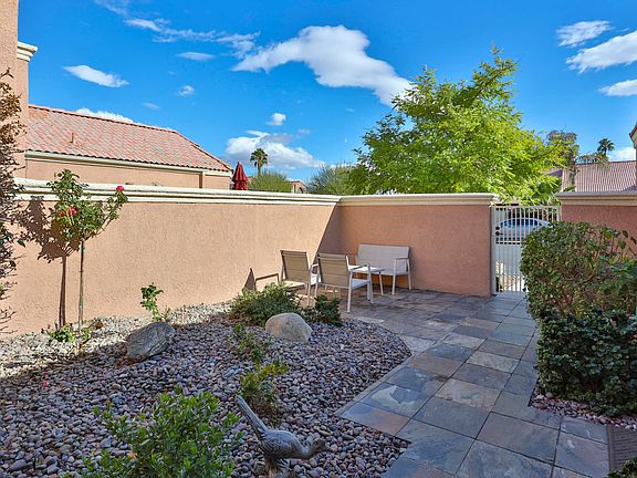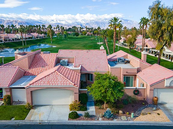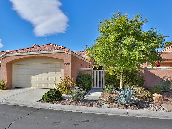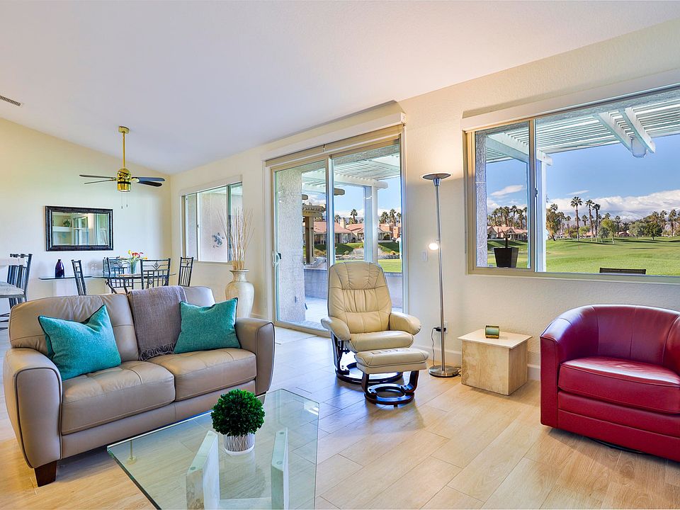 Stunning Oasis CC home with a million dollar view! Have you been looking for an upgraded home with that perfect location? If your answer is yes, WELCOME HOME. With 2 Master Suites and a powder room this home is great when you have out of town company. Light colored plank tile and white baseboards are installed throughout the condo. The windows and slider have been replaced with energy efficient Low-E windows by Milgard. The Kitchen cabinets have been replaced and the appliances are newer. The home has been repainted and new lighting installed throughout. All bathrooms have new vanities, toilets, the master tub was removed and a gorgeous shower installed. The fireplace log set was replaced with glass pebbles and is highlighted by a stacked stone surround. The garage is finished with a epoxy floor. The Oasis CC is one of the best kept secrets in Palm Desert. Low HOA dues, affordable golf and tennis, a clubhouse with causal and fine dining with beautifully maintained grounds. The Oasis CC is centrally located and close to world class dining, entertainment and recreation.