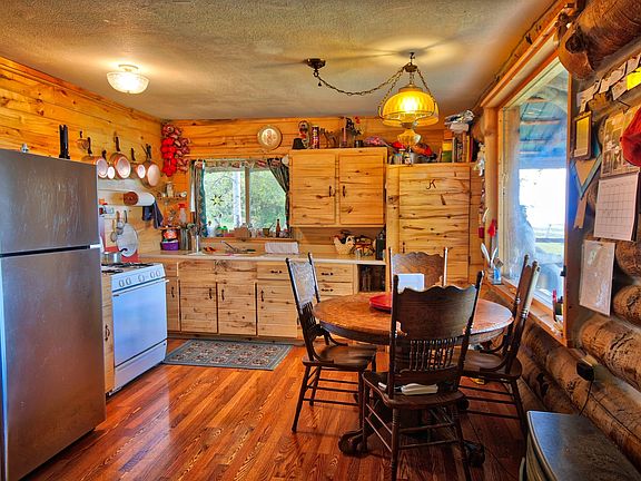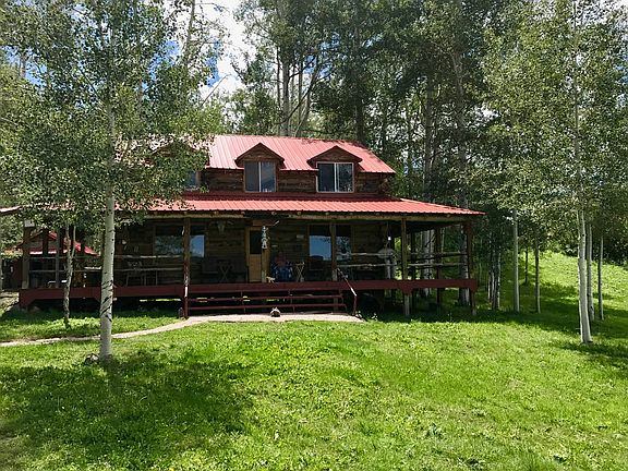Lakefront Log cabin with Mountain property in Montrose CO Just listed! Unique mountain property on 35 acres in a very secluded setting. This cabin sits behind a gated 6,200 acre private ranch with no public access. Situated on a lake filled with rainbow trout bordering 671 sq. miles of BLM access in unit 65. Beaton creek flows out of The Buckhorn Lakes at 9,800 feet and provides a constant fresh flow of oxygenated water to support a large heathly population of trout. The cabin is 1,502 sq.ft. with 4 bedrooms and 2 bathrooms with a spacious wrap around porch. Additional improvements include a vehicle carport, a solar/battery system with a generator, and a utility building. Healthy populations of Elk, Mule Deer, and Bear reside in the area. Annual taxes only $805.48.