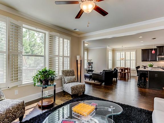 This one has it all! Sandy Springs beauty in gated community only 5 yrs young. Entertain in style in this very open flr plan w/dark chocolate cabs, wide plank flrs, white background granite & SS apps. Huge kit island w/ample seating open to fireside GR. Deck overlooks wooded, priv bkyd, easy to fence in. Mstr + 3 more BR's up w/luxe mstr ba w/vaulted ceiling. Full fin terr lev w/full ba all tile, game rm & home theater rm behind rolling barn doors. Plantations shutters thru-out. Gar wired for car charging station. Pool and gym at clubhouse, HOA maintains lawn, low fees.