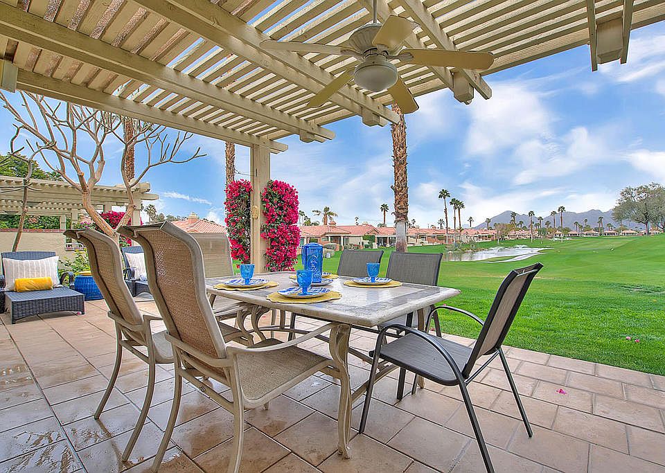The Oasis Onsite Sales Office proudly presents 76955 Scimitar. Located on the 16th fairway with stunning patio views of the mountains, lake and down the entire 16th fairway. The view is magnificent from the oversized kitchen window and viewable from the dining room as well. This unit is located very conveniently located to a pool and spa and best of all it is in The Oasis CC, one of the best kept secrets in Palm Desert. You get it all, golf, water & mountain views. Reasonable HOA dues, affordable golf and tennis, a clubhouse with causal and fine dining, beautifully maintained grounds and the friendliest members make this club special! The Oasis CC is centrally located and close to world class fine dining, entertainment, shopping and recreation