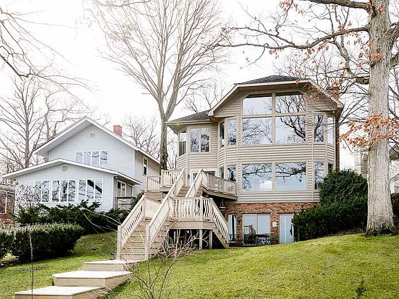 Does it get any better than a deck that extends to your very own Lake Wawasee pier? Or a master suite that makes you feel like royalty with its gorgeous fireplace and wall of windows overlooking the water? Or a large walkout basement with a stone fireplace, a wet bar, and space for a hot tub or sauna--all you need for Gatsby-esque parties? Does it get any better than custom built-ins, a central vacuum system, geothermal heating and cooling, a chef's kitchen, and a dramatic entryway? This is the life! Home Details: 4,640 square feet; 50 feet of lake frontage on Lake Wawasee; three bedrooms; three and a half bath; open floor concepts on main level and lower level (basement); incredible chef's kitchen with granite counter tops; walk-in pantry; great views of the lake; fireplace in main living space; custom built-ins throughout; surround sound; security system; master ensuite on second floor with a fireplace, superior lake views, a gorgeous powder room, and master bath with tiled shower; walkout basement with stone fireplace, wet bar and room for a hot tub or sauna; expansive deck extends to the private pier.