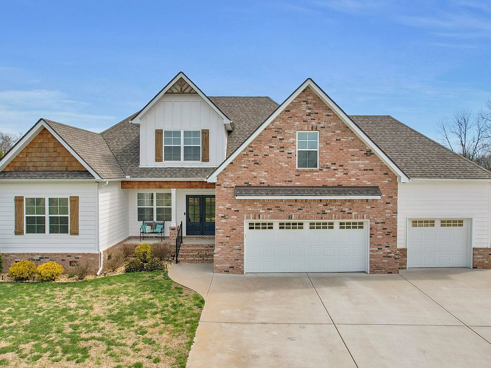 A gorgeous custom built three bedroom country home on 3.39 acres features an open floor plan with vaulted ceilings and wood beams. Beautiful dark hardwood floors, five panel doors, custom blinds and ceiling fans throughout. The kitchen has granite countertops, an island, self-closing cabinets, and drawers plus high-end Whirlpool appliances. Owners’ suite is downstairs and includes a tray ceiling and ensuite bath with extra-large shower. The second bedroom downstairs and third bedroom and an office are upstairs. Oversize heated 3 car garage with bonus room above. Electric fireplace insert, fenced over one acre back yard. 30 x 30 barn with electric/solar lighting. Hustler Zero Turn, 60 inch Commercial mower negotiable.