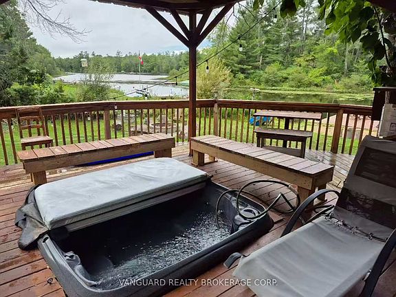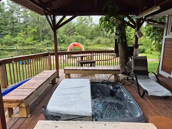 Tranquil riverside livingPristine waterwaysExcellent fishing opportunitiesPrivate dockProfessionally built dockDetached bunkieHot tub