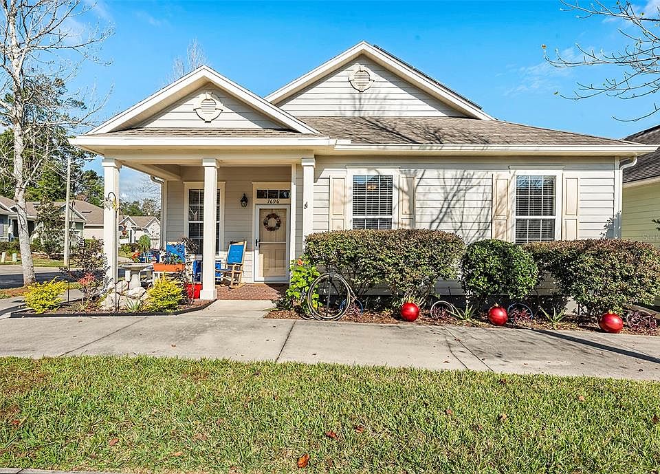 Extremely well maintained 3 bed/2bath home in desirable Tower 24! 10' ceilings throughout, beautiful wood floors in the living room and dining room. Solar panels, installed in 2018, currently saving homeowners $200-$300 per month. Spacious master suite with dual sinks, walk-in shower, soaking tub and walk-in closet! Spacious chef's kitchen with stainless steel appliances and granite countertops. Dishwasher and Range installed in 2020! HOA maintains the front yard and has reserves for roof replacement and exterior painting when needed! Exterior freshly painted in Summer of 2022. Screen porch overlooks the low maintenance backyard that is fully fenced. Breeze way attaches to a spacious garage with added storage shelving. Close to shopping, UF and multiple grocery stores.