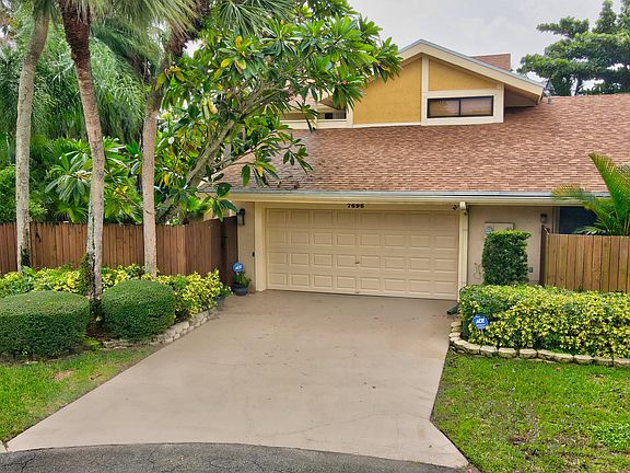 Gorgeous fully renovated 3 Bed/3 Bath Sierra Del Mar Cypress Model with private inground pool centrally located in Boca Raton, walking distance to houses of worship, shopping, and A-rated schools. Beautiful first floor master suite with a full bath and two large closets. Two spacious guest bedrooms with full bath on the second floor and a cozy loft that could be used as a fourth bedroom or den. The open floor plan features vaulted ceilings, a wood burning fireplace, cocktail bar with wine refrigerator, formal dining room and custom wood and wrought iron staircase. This home is a tropical oasis nestled on a cul-de-sac street with a private oversized backyard with a custom inground pool surrounded by lush landscape. Other features include a security system, central vacuum and much more. Renovations include plumbing/resurface pool and pool tiles 2023, new roof, skylight, and sprinkler system 2022, new air conditioning/HVAC 2021. Community pool, lawn service, exterior house painting and cable included in low maintenance fee of $251.00 per month. A private park with walking paths and pond located across the street. The neighborhood is a great family and pet friendly community.