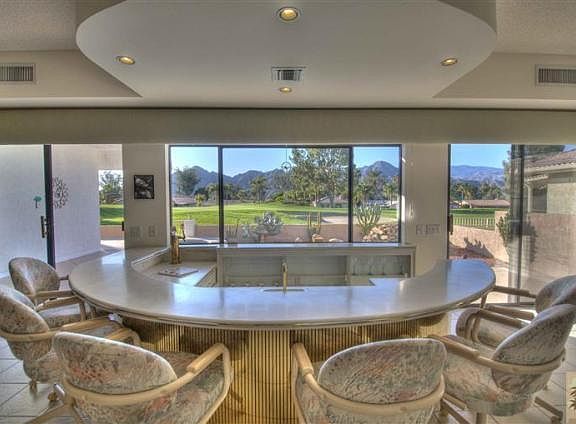 Welcome to the ultimate desert retreat. This custom built, energy efficient home is an entertainer's and tinkerperson's delight. Located on the 14th hole of the Palm Desert Country Club, this home gives you access to south facing mesmerizing panoramic mountain views and sunsets year round. The amenities in this home are endless and each detail well thought out. The kitchen boasts a sub zero fridge, Jenn-Air cooktop, and overlooks the spacious great room. While seated at the circular bar enjoy the golf course, mountain and pool/bubbling waterfall. Stargaze at night by the outdoor firepit. The natural desertscape conserves water, and provides low landscape maintenance. This pristine home boasts a FP in the master retreat, large master bath, walk-in closet, shower, tub, bidet, built in planters, and a built-in vacuum system. The garage features a full bath and a mudsink. BONUS: Large finished basement that includes a 3 Bedrooms, bath, pool table. (Mancave) Brokered And Advertised By: Intero Real Estate ServicesListing Agent: Maria L. Bradfield