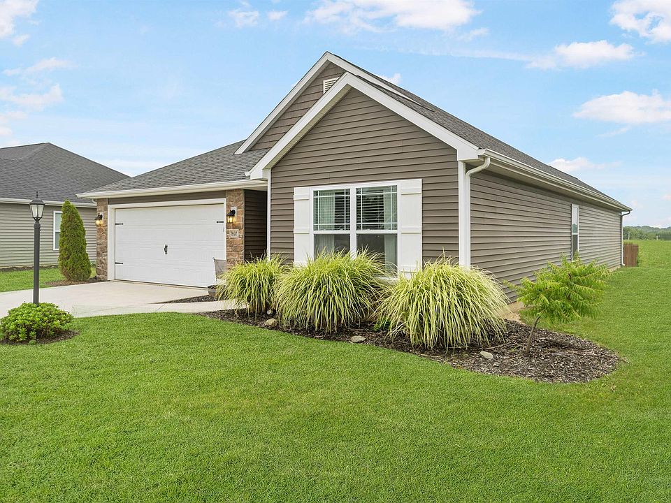 Gorgeous 6 year old home that looks better than new. This 3 bedroom 2 bath split bedroom home boasts 1537 SF over one open, well planned level...the intuitively designed floor plan flows naturally from room to room. The Stone & Vinyl facade is as beautiful as it is durable, and the large cul-de-sac lot is perfect for kids/pets/entertaining! 10'ceiling in the Foyer (w/ hickory wood floors) and the spacious Great Room with its large windows. Great Room flows naturally to the Nook and chef's dream Kitchen, feat. custom Grabillcabinets w/ abundant storage space, 5' Island w/ breakfast bar, and Walk-In-Pantry. Kitchen appliances Included! The Owners Bedroom features a huge Walk-In-Closet and privateen-suite with 5' shower. Bedrooms 2 and 3 located off Foyer, with 2nd full bath between. Spacious Laundry Room, Finished 2 Car Garage, oversized 12'x10' patio, Two-Tone paint, High efficiency HVAC, plus much more! The backyard is surrounded by a picket fence and a gorgeous pergola covers the patio, perfect for gathering on a nice night.