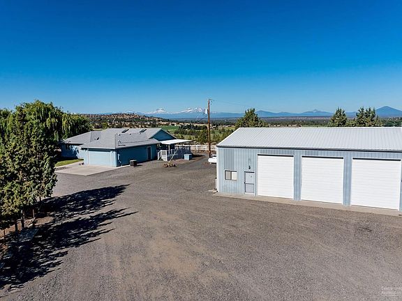 3/2 home with spectacular mountain views, 6.76 predominantly flat acres, 3.26 acres of irrigation, detached studio with bathroom & shower, large 4-bay shop, and RV hook-ups. Its great room has vaulted ceilings and opens to a covered porch as well as a patio finished with pavers. West-facing picture windows maximize views and flood living space with natural light. A picnic spot west of the home overlooks the lush farms in the valley below. NOTE: Google's map is wrong; NW 10th St. ENDS at the property line.