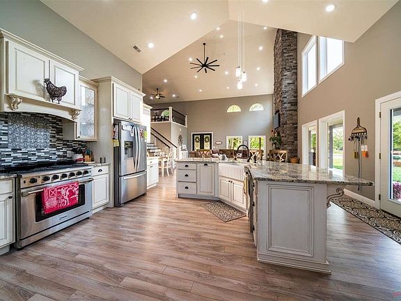 Very well maintained land and home. This property has to many nice features to boast about. The land is completely fence in with so many trees for hunting and pasture for livestock. Property has a huge Pavilion with electrical to sit under and watch the wildlife and have get togethers. There are 3 permanent camper hookups on the property. The home is like a castle. The living room, kitchen, and dining room are all open. The fireplace in the living room goes all the way up to the tall 26ft ceiling. The kitchen has a beautiful breakfast bar. The dining area has a nice screened in sunroom right off of it. The upstairs is so dreamy. The Master Bedroom is so big you can live in it. Right off of the bedroom is the Master Bathroom with double sinks, soaker jet tub, walk-in shower, and a big big walk-in closet. Walk on to your own private deck off of the Master bedroom. The 2 bedrooms downstairs are very spacious. They both have walk-in closets.
