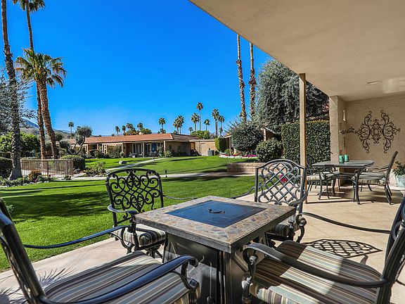 Major Price Reduction to $795,000! Direct South leisure with stunning Mountain Views from Sandpiper 2BD/2.5BA one level duplex condo in Indian Wells Country Club! Remodel added a 1/2 bath, perfect for guest use. Attached 2 car + golf cart garage is a bonus. A Great Room with fireplace and open kitchen enjoy views of the South Mountains through a wall of sliders with Plantation Shutters. The large tiled patio offers a covered area to enjoy dining and sunsets. 2 king size, En-suite bedrooms have walk in closets and sliders opening to an interior private courtyard. The community pool and BBQ area are nearby. The Remodel includes kitchen, w new appliances, gas cook-top, & granite counters. Tile flooring and carpeting replaced throughout. 2 Baths remodeled plus 1/2 bath added. 2012 new gas line installed for stove, dryer, hot water heater and furnace. 2019 new HVAC system. 2024 new 50-gal Hot Water Heater, 2024 Roof re-coated w 3-year roof certification. Electric Inspection w all repairs completed. Plumbing Inspection w new pressure regulator valve & water shut off. Condo in top condition. All furnishings, kitchen dishes, linens, etc. are included in the sale. IWCC enjoys a 24-hour Guard Gate. HOA covers insurance & painting of exterior, road surfacing, landscape with seasonal plantings, pools & BBQ area. Indian Wells offers owner perks, including preferential tee times and lower golf fees.