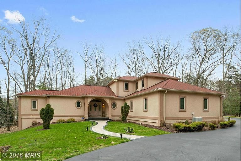 Custom fully fenced 3.6 acre southwestern style estate. This 5 bed 4.5 bath home has every option from gated entrance, detached in law apartment, 9 car garage (6 detached), first floor master suite, & outdoor kitchen. Main Lev includes step down Fam Room w/wood floors, FP, & Gourmet kitch. 2 bed 1 full bath on upper lev and basement includes wet bar, exercise room, bed, full bath. A TRUE MUST SEE!