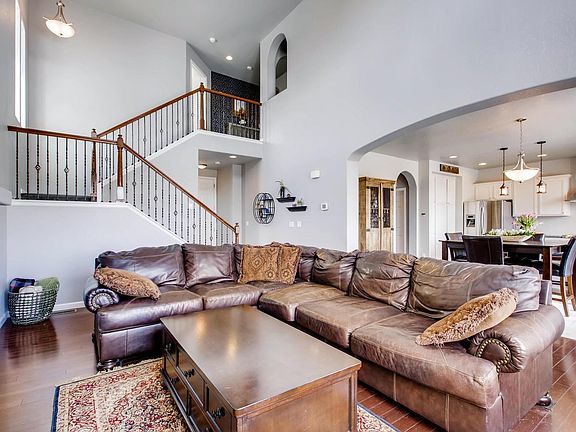 Highly sought after home in Southcreek features a completely remodeled kitchen, stainless steel appl, new induction oven, micro drawer in island, new range hood, tile backsplash, recessed lights, large island w/ pendant lights, granite counters. Living room has 18-foot ceilings, gas fireplace, shiplap accent wall & motorized blinds. Beautiful hardwood floors on main level, new carpet upstairs & new interior paint throughout. Remodeled master suite includes oversized walk-in closet, porcelain tile floors in bath, recessed ceiling, brick accent wall w/ arched entry, 5-piece bath w/ newly tiled shower & frameless shower enclosure, soaking tub, quartz counters, double vanity, & oiled bronze fixtures. Main floor laundry includes front loading washer/dryer. Unfinished basement w/ rough-in plumbing. Prof landscaped front yard, stamped concrete patio in backyard w/ gas hookup for outdoor kitchen. Oversized garage comes w/ fridge & workbench. Bring your pickiest buyers, this home will go fast!