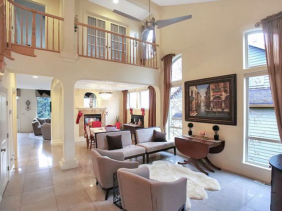 Commanding views from this custom contemporary home in an upscale neighborhood! Extensive upgrades, marble tiled floors, vaulted ceilings, walls of windows with tree & valley views from all levels. Open floor plan with large windows, double sided fireplace & surround sound. Gourmet kitchen features stainless steel appliances, granite counters, custom hood, gas range & pantry. Master suite boasts of spacious walk in closet & master bath. This is a 10!