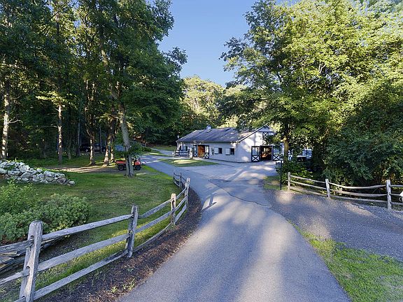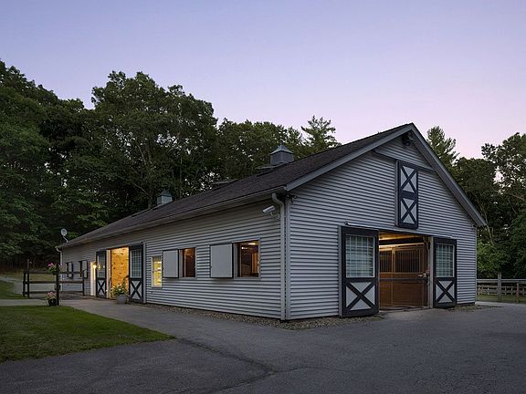 An extraordinary 33.5± acre estate located on a scenic country road surrounded by magnificently manicured grounds, rolling meadow, pond and forest. Built in 1985 and renovated in 2013, the stately five-bedroom residence has new systems and a comfortable yet spacious feel, making it well suited for large group entertaining or intimate family gatherings. The property has the added bonus of a large flat playing field ideal for lacrosse, soccer, or a hockey rink, as well as a man-made pond and rock waterfall. Perfect for various farming or equestrian opportunities, there is a 9-stall barn with grain room, tack room and office. There are 7 irrigated paddocks, two run-in sheds, riding ring, derby jumping field, a gym, and a trail that runs the perimeter of the property. Offering the utmost in privacy, the property is located a few minutes from I-95 and is about 24 miles (39 km) north of Boston. There is division potential.