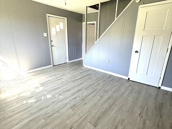 This updated four-bedroom, one-bathroom home is located in Plymouth, PA. The property is set behind another home, offering added privacy and a unique rear-house layout.