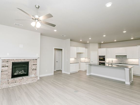 Open concept living area with a separate formal dining room, 10 foot ceilings in the entry and main living area, 4 bedroom, 3 bath, brick on four sides ranch home with a covered patio.