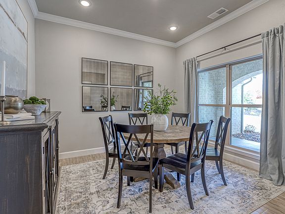 The Tera is a beautiful plan from Arise Homes. Each Arise home uses real brick and stone for the exterior, meaning easy maintenance for years to come! This home will have a fully sodded yard with a landscape package that includes attractive trees and shrubs. This ranch home has an open concept floor plan with 10 foot ceilings in the entry, main living area, and primary bedroom. The Tera is a 4 bedroom, 3 bath home with a formal dining room, covered back porch and front entry.