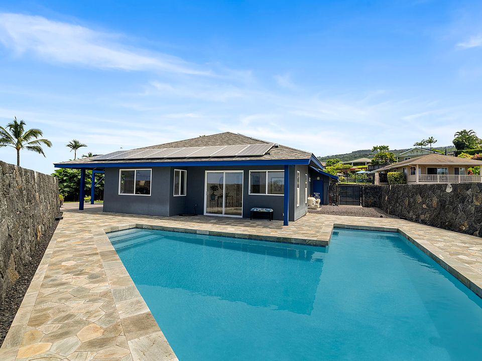 Beautiful in-ground swimming poolLow maintenance landscapingCustom lava rock wallsVaulted ceilingsPhotovoltaic solarOpen floor planTile floors