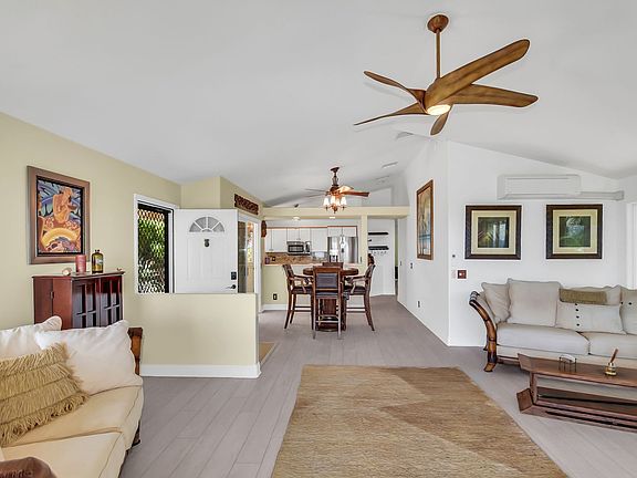 Step inside to find an open concept floor plan filled with natural light, vaulted ceilings, and cool island breezes. The spacious living area seamlessly connects to a modern kitchen with granite countertops, stainless steel appliances, and ample cabinet space perfect for entertaining or enjoying a quiet meal at home. The home features split AC units in the bedrooms and living room to keep you cool year round.