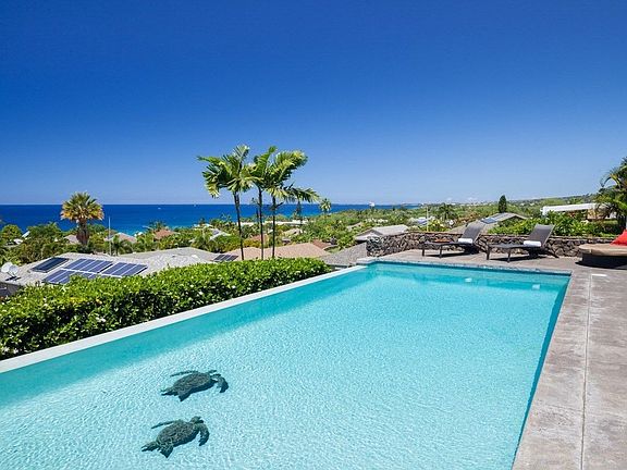 This stunning one story Keauhou View Estates home offers outstanding panoramic ocean views just a short distance from Magic Sands Beach.This turnkey furnished 3 bed/2 bath home features:- A gorgeous Infinity Edge Pool (Solar heated and Salt Water low chemical system)- Open floor plan with comfortable great room (all tile floors throughout home)- Vaulted ceilings - Lush tropical low maintenance landscaping- Expansive lanai areas to facilitate indoor/outdoor living- Yard is gated and completely fenced in for privacy and securityLET'S REVIEW - Ocean View, Infinity Pool, Open Floor Plan, Furnished, Single Story, No Carpet, Privacy, and Big Lanai.