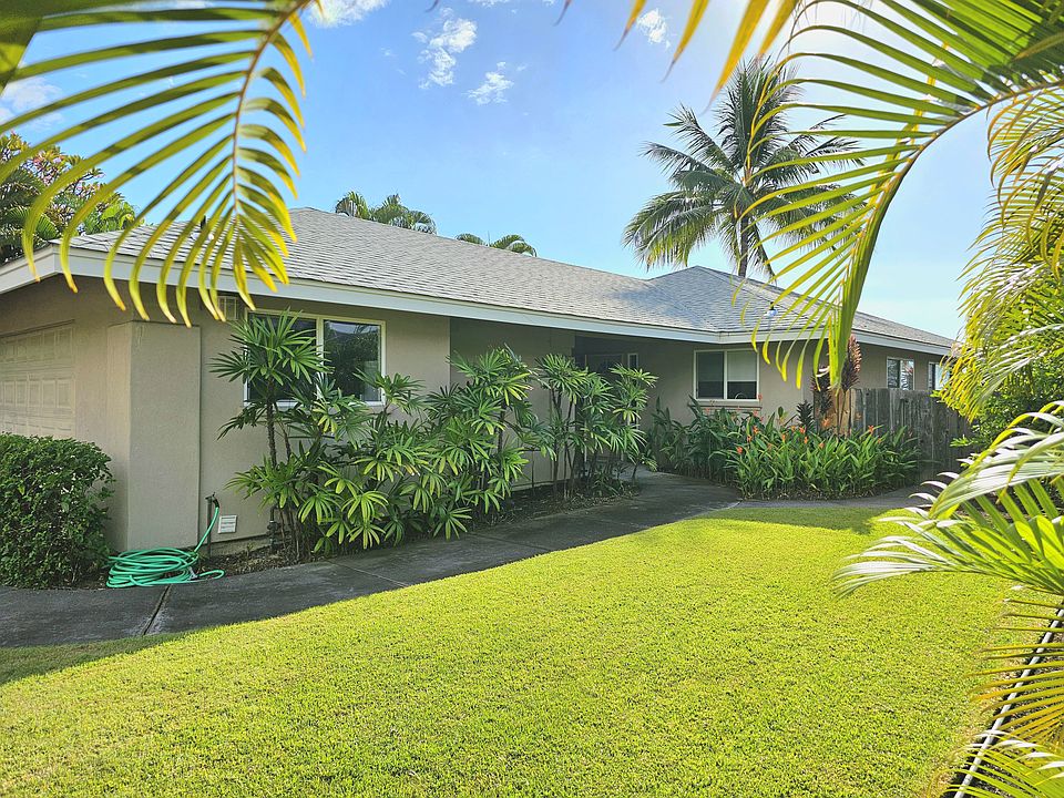 Lush landscaping with producing Meyer Lemon, Coconut tree, two Kau Orange trees, Hibiscus, Gardenia and Plumeria and White Pineapple. Computerized sprinklers. Spacious 2 car garage with laundry. Neighborhood has CC&R's but no fees.