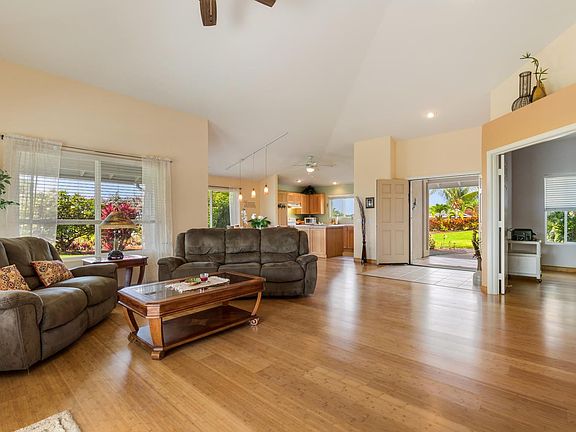 Opportunity knocks! Alii Heights with ocean view and plenty of outdoor living space! Remarkably efficient single level (no stairs) open floor plan with spacious rooms and soaring vaulted ceilings. Upgraded Bamboo flooring adds clean lines with warmth and continuity throughout the home. Step saving Kitchen has hardwood De Wils custom cabinetry boasting plenty of counter space and a separate island. You will appreciate the gorgeous renovated bathrooms with granite, new hardwood cabinets and new flooring. The Master Suite connects to the main wrap around lanai and has a large walk in closet, renovated walk in shower and dual sinks. The office or 3rd bedroom is cleverly situated off of the great room with an angled double door way that allows you to make it part of the great room or close it off for privacy. A Generous Guest bedroom has sliding doors leading to private outdoor seating and lanai area. A Magical yard awaits you and is landscaped for privacy with separate enclaves and gathering spaces. Both home and yard lend the feeling of space, serenity and privacy. Very Popular Neighborhood with easy access to Alii drive and ocean activities or the main highway. NOTE: full 3 car garage and separate interior laundry!