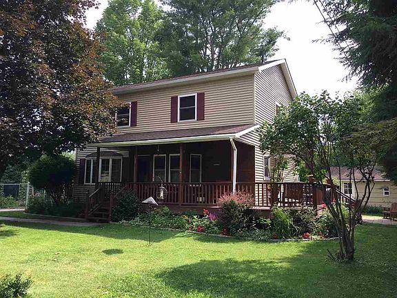 Narrowsburg in-town 2-story beauty, on a corner lot just across the street from an eagle-sighting bench on the Delaware River. 3bd, 2 ba, fully renovated in 2008 - including a full-floor master suite with several sitting and desk areas, a full bath and a walk-in closet. Downstairs, the kitchen was redone, and a large bump-out expanded the eat-in portion. The bathroom was completely rehauled and features a 3/4 size clawfoot tub. Ample porch and deck space wrap the front and side of the house, and a mature, masterful flower garden surrounds all sides. The large back yard is fenced and in one corner is a thriving veggie garden. Unbeatable value in this well-loved home, and walking distance to Main St. for shopping / dining, and river access for swimming.