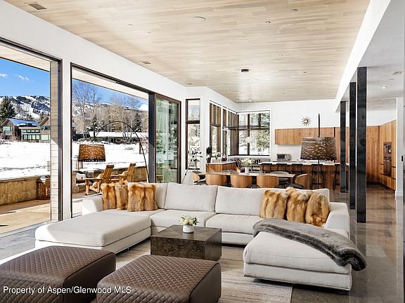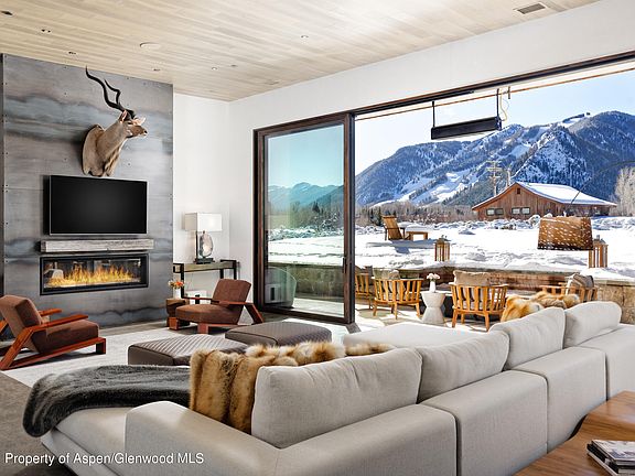 Nestled at the end of a private cul-de-sac, this six bedroom property boasts views of the ski areas and surrounding mountains. Enjoy indoor/outdoor living with a bright and sunny open plan kitchen, dining and living room, each opening up to a patio area containing two fire pits, a dining area and built in grill. The entry level master suite walks out to the glorious outdoor space and features a spacious en-suite bathroom with a soaking tub, steam shower and large walk in closet. Three generous guest suites, a powder room and mudroom complete this level offering the convenience of one level living. The lower level includes an additional guest suite, wine room, bar, recreation room with pool table, card table and exercise equipment as well as a cozy den area.