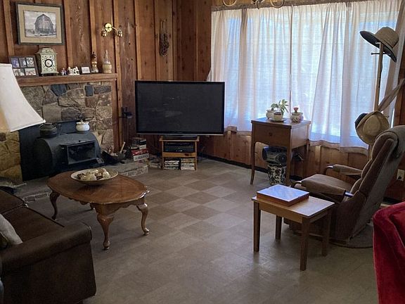Charming cabin-style home includes a view of the lake, surrounding mountains & just minutes from nearby recreation. Dual pane windows, a play house for the kids or storage room, & detached 1 car garage that has been modified for a longer vehicle or boat. You'll be comfortable in the summer days with window AC units through out & on cool evenings enjoy the fireplace insert. Great location for weekend rentals or escape from the city crowds. Cozy kitchen with dining area. Parking for your guest or toys.