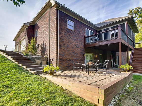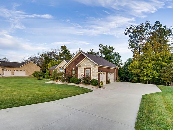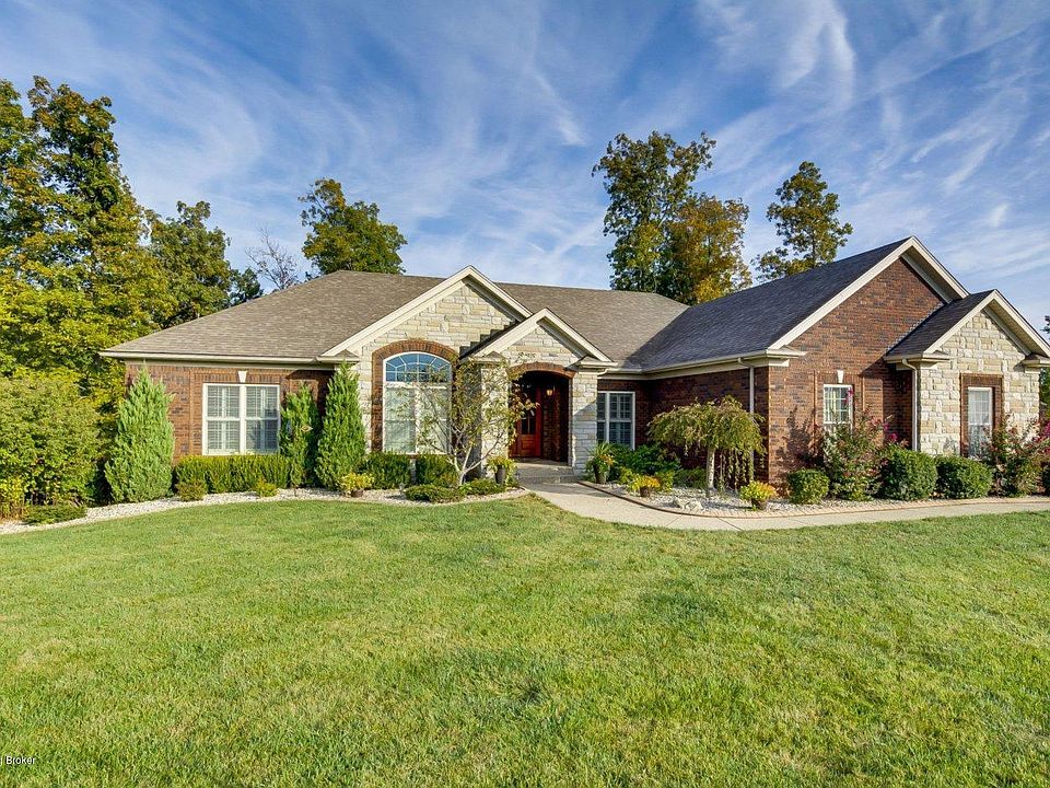 Quality built walk out ranch on minutes from the Gene Synder. Sitting on a private 1 acre lot with woods behind the home. 3 Car Garage. Ranch Style open floor plan. Enter through an 8 ft. Mahogany Arch doorway. The Formal Dining room opens to the vaulted Great Room featuring a floor to ceiling fireplace. Brazilian Cherry Floors. in the custom designed Kitchen. Custom cabinets, granite tops, breakfast area, Cafe' GE appliances. Duel fuel stove. 3 bedrooms, master suite with private bath and large closet. Enjoy the view from a screened porch. The Lower Level walkout, has a family room, full bath and a room that could be used for guest. Hook ups for a possible kitchen/bar. Walk out to a patio, and a raised patio area. Steps leading up to driveway. Beautiful Backyard.