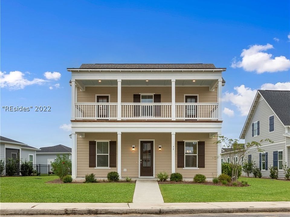 Enjoy the Lowcountry weather on the double front porches of this 4 bed, 3 bath home. Built in 2021, the first floor offers an open concept living room to formal dining & eat-in kitchen, a primary suite, second bedroom, full bath, & laundry room. Upstairs features a loft with access to the second-story porch, two additional bedrooms, and a full bath. Outside, an extended covered lanai and a fenced yard. You'll be able to embrace an active lifestyle with Hampton Lake's resort-inspired amenities including a 227-acre freshwater lake, 3 pools, sandy lake-front beach, tennis, pickleball, basketball, dog park, restaurant, spa & fitness center.