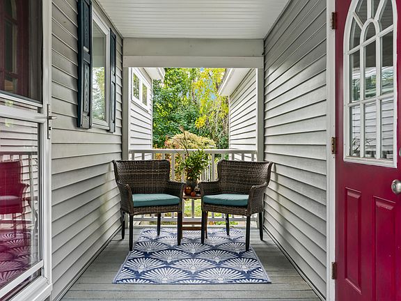 Seasonal bloomsBeautiful landscapingPrivate covered porchTwo bedroomsLovely vaulted ceilingDining roomEfficient kitchen