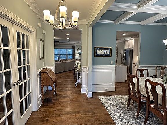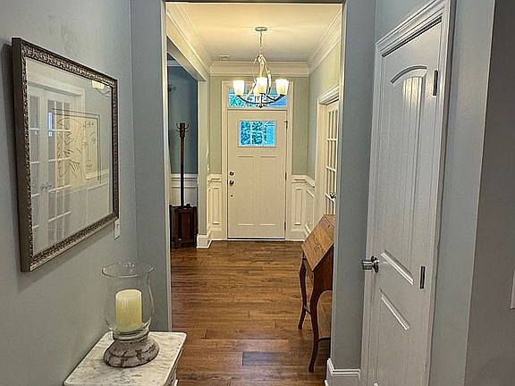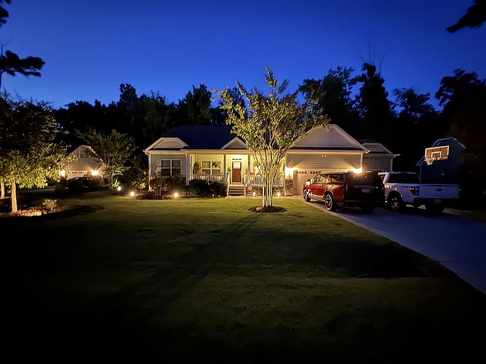 Welcome to Eagles Watch , Hampstead's premier waterfront, gated community where luxury meets nature in perfect harmony. This is your chance to own a piece of paradise with this beautiful 4 bedroom, 3 bathroom home. When you walk in the door, you will see that this house has it all. You will be welcomed in your beautiful foyer with custom trim. To your left you will notice a formal dinning room that is perfect for holiday gatherings. To your right is the perfect office space for those days when you want to work from home. As you enter the living room, you will take notice of the open floor plan with your kitchen, breakfast area and seating for 6 at the peninsula. The gourmet kitchen has dual wall ovens, a gas cook top and stainless steel appliances. You will also find the laundry/mud room, primary suite, and 2 additional bedrooms on the main level. Upstairs you will find a huge bonus room with a 5' x 10' screen that is lit up by a 4K, HDR Epson Home Cinema Projector that is perfect for gaming, sports and family movie nights. You will also find a fourth bedroom and full bath to finish the space. Enjoy the beautiful landscape and watch the wildlife from your back deck or sit on the front porch and wave to the neighbors passing by. Your dogs will love the fenced in yard and don't worry, you have plenty of space to park your cars, and your golf cart in one of the 3 car garages. In your down time, you can enjoy the community pool, go to the fitness center for a workout, walk the nature trails, launch your kayak from the dock, or just relax in the open air club house. There are too many features to list in this beautiful home. Did I mention the home warranty that comes with the purchase?