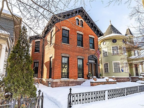 Classic Brick Victorian where History meets Contemporary living! Over 3,400 sq ft, 4 bedrooms and 3 full baths. Many upgrades which include new thermal pane windows, 50-year architectural roof. Chef's kitchen with updated appliances and gas fireplace. The list goes on to include: Wine room, which is temperature controlled and can host up to 300 bottles of wine, gleaming hardwood floors throughout (recently refinished). 1st floor bedroom hardwood floors were replaced and finished to match the flooring on the main level. Other amenities include: second floor laundry, radiant floors in the main bath, walk in closet in the Primary Bedroom, 12 ft plus ceilings. Exit to the outdoors and enjoy an expansive covered deck including outdoor lighting. Enjoy a well-manicured backyard with vintage grape vines. Excellent area for entertaining! Please note that there is a 2nd deeded lot out back located at 81 Beaver St. The lot is deeded to this property. It offers a Shed, 2 parking spaces and an area for gardening. Also updated: HVAC system. On-demand hot water recently replaced in 2025. This home is located in the Preservation District in the desirable Cornhill Neighborhood.